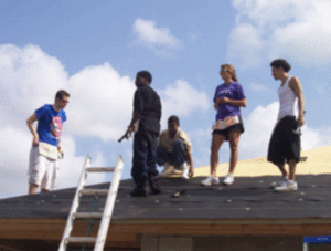 Students repairing a roof.